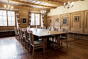 In der neu gebauten Burgerstube bietet ehemalige Sitzungstisch der Burgergemeinde Platz für bis zu 14 Personen. Der attraktive Raum ist ideal für Sitzungen, Seminare und kleine Gesellschaften.